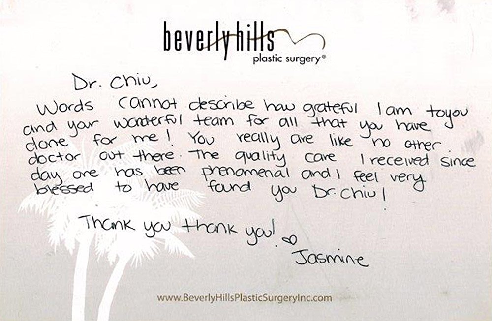 I spent a year and a half traveling all over the United States consulting with seven different plastic surgeons that specialized in Brazilian Butt Lifts. I went to Boston, New York, Miami, Atlanta, and Los Angeles in search of the best surgeon. I wanted to make sure my results not only made my rear end look better, but contoured and sculpted my entire body. In my opinion you were the only surgeon who had the capability to give me a flat stomach, contoured curves, and a projected bubble butt that I wanted. For this, I thank you. If I had known this early on, I would have skipped all the other consultations and made Los Angeles first on my consultation list.