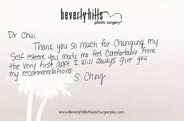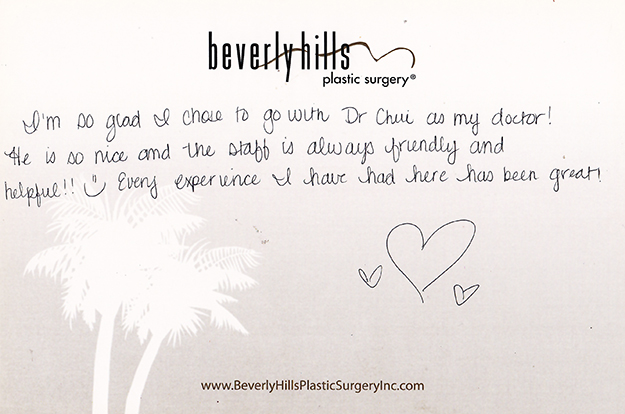 All reviews are from real patients of Dr. Gabriel Chiu at Beverly Hills Plastic Surgery Inc. On behalf of Dr. Gabriel Chiu and staff at BHPS Inc, we would like to thank you for taking the time to leave us your testimonial and review. Your feedback of your experience with Dr. Gabriel Chiu and/or with the team at BHPS, Inc. is very important to us. Such comments and testimonials help us to improve upon and continue to provide the excellent service and care each patient deserves.