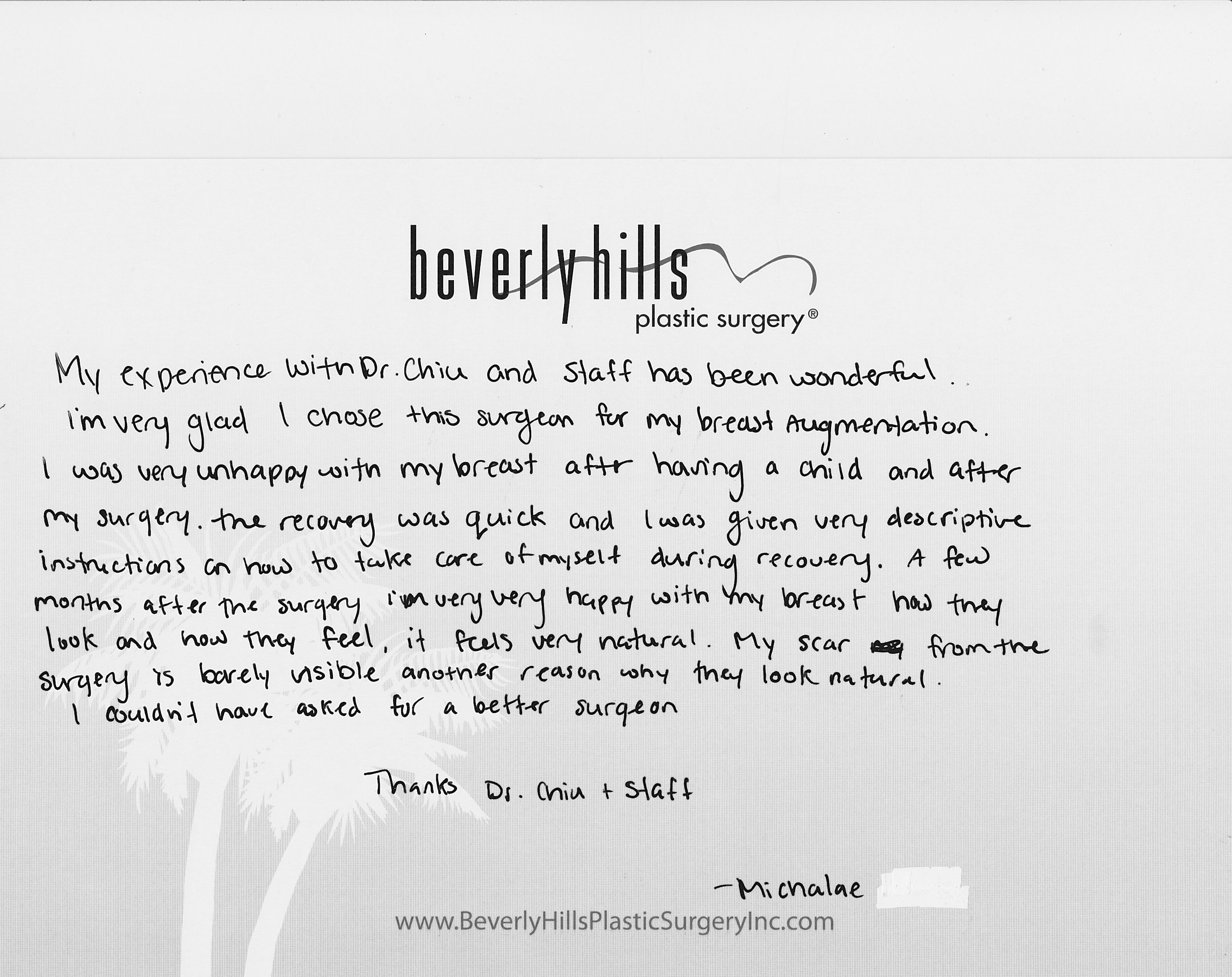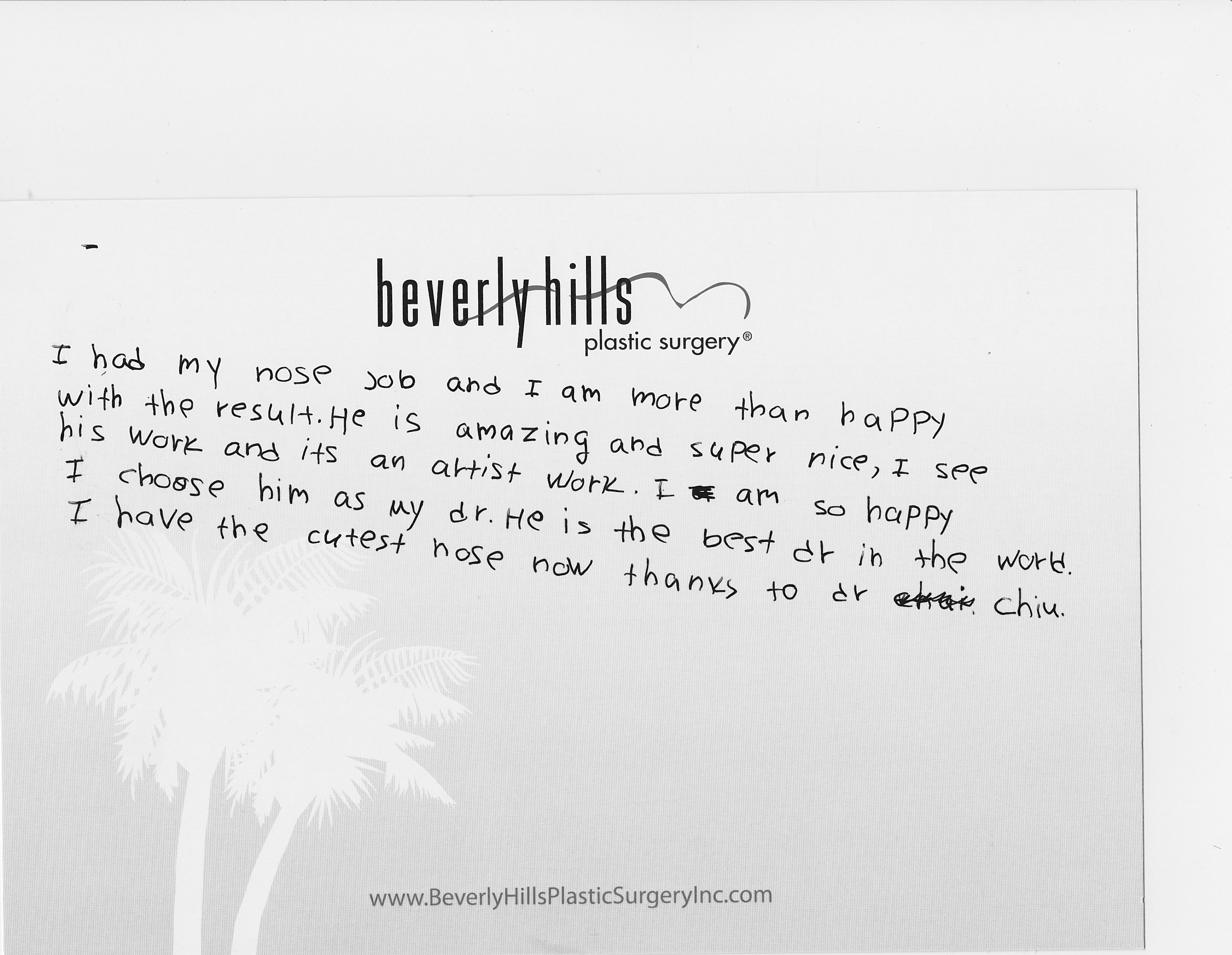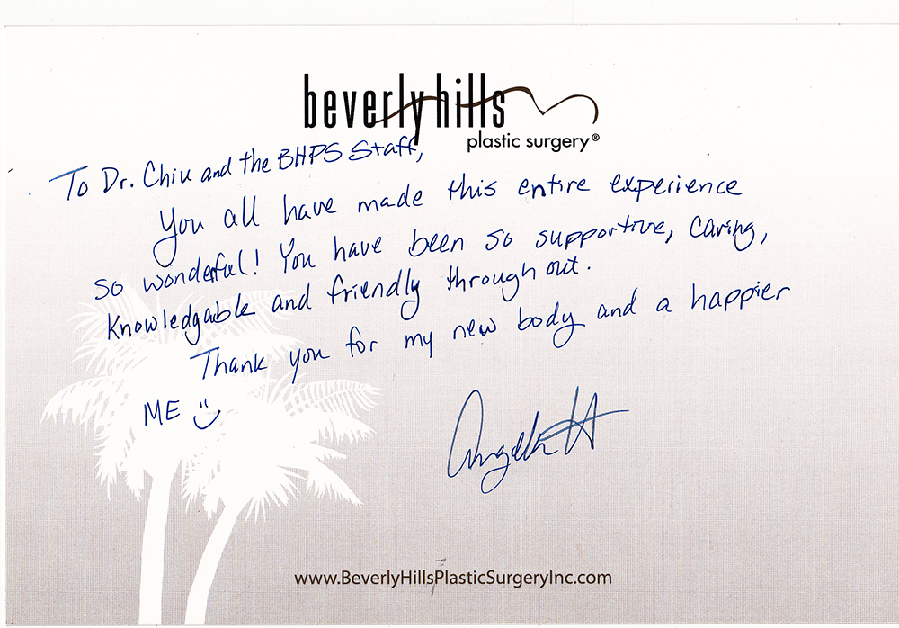 All reviews are from real patients of Dr. Gabriel Chiu at Beverly Hills Plastic Surgery Inc. On behalf of Dr. Gabriel Chiu and staff at BHPS Inc, we would like to thank you for taking the time to leave us your testimonial and review. Your feedback of your experience with Dr. Gabriel Chiu and/or with the team at BHPS, Inc. is very important to us. Such comments and testimonials help us to improve upon and continue to provide the excellent service and care each patient deserves.