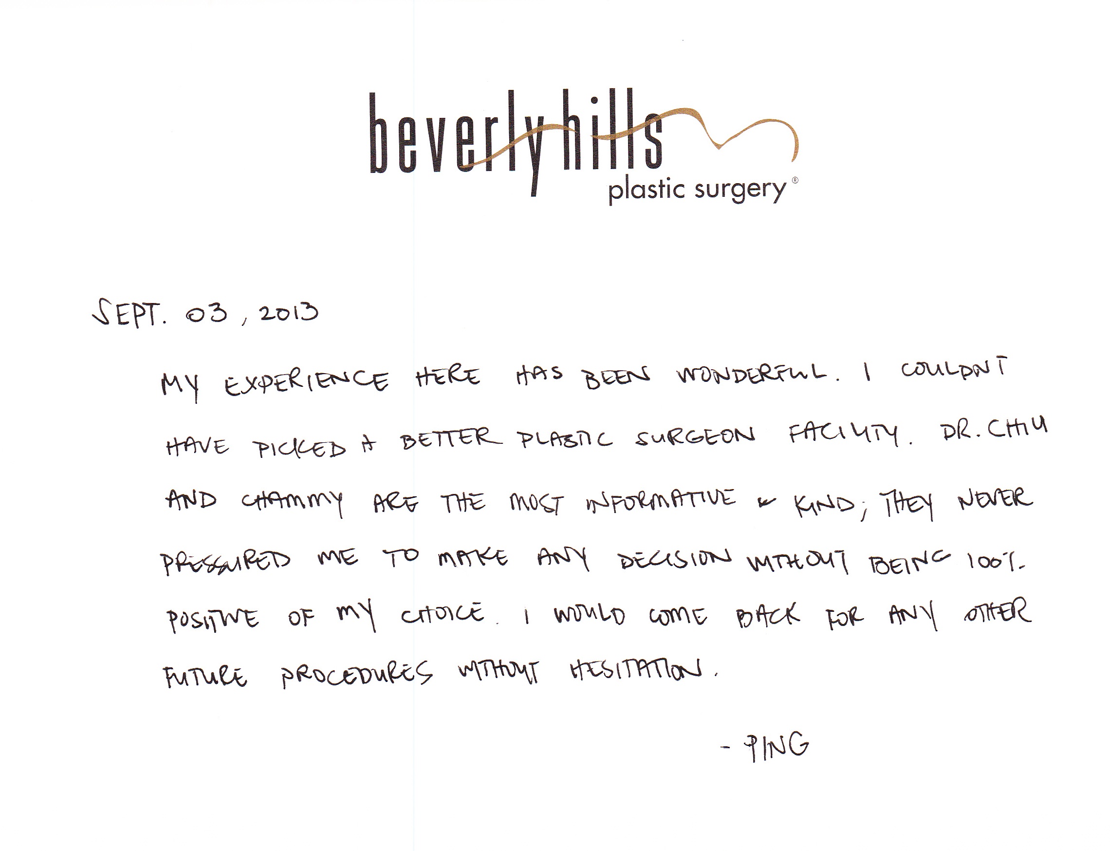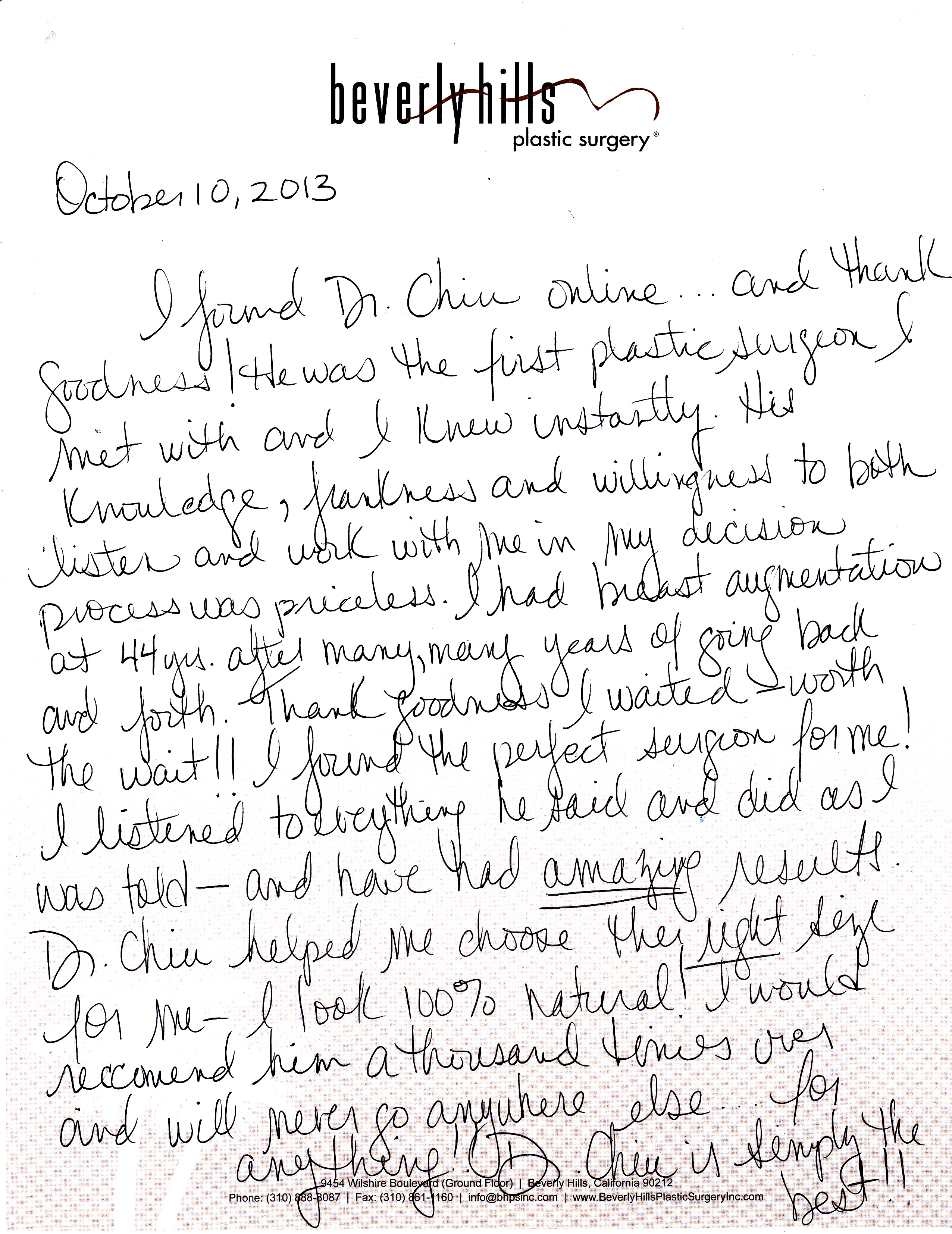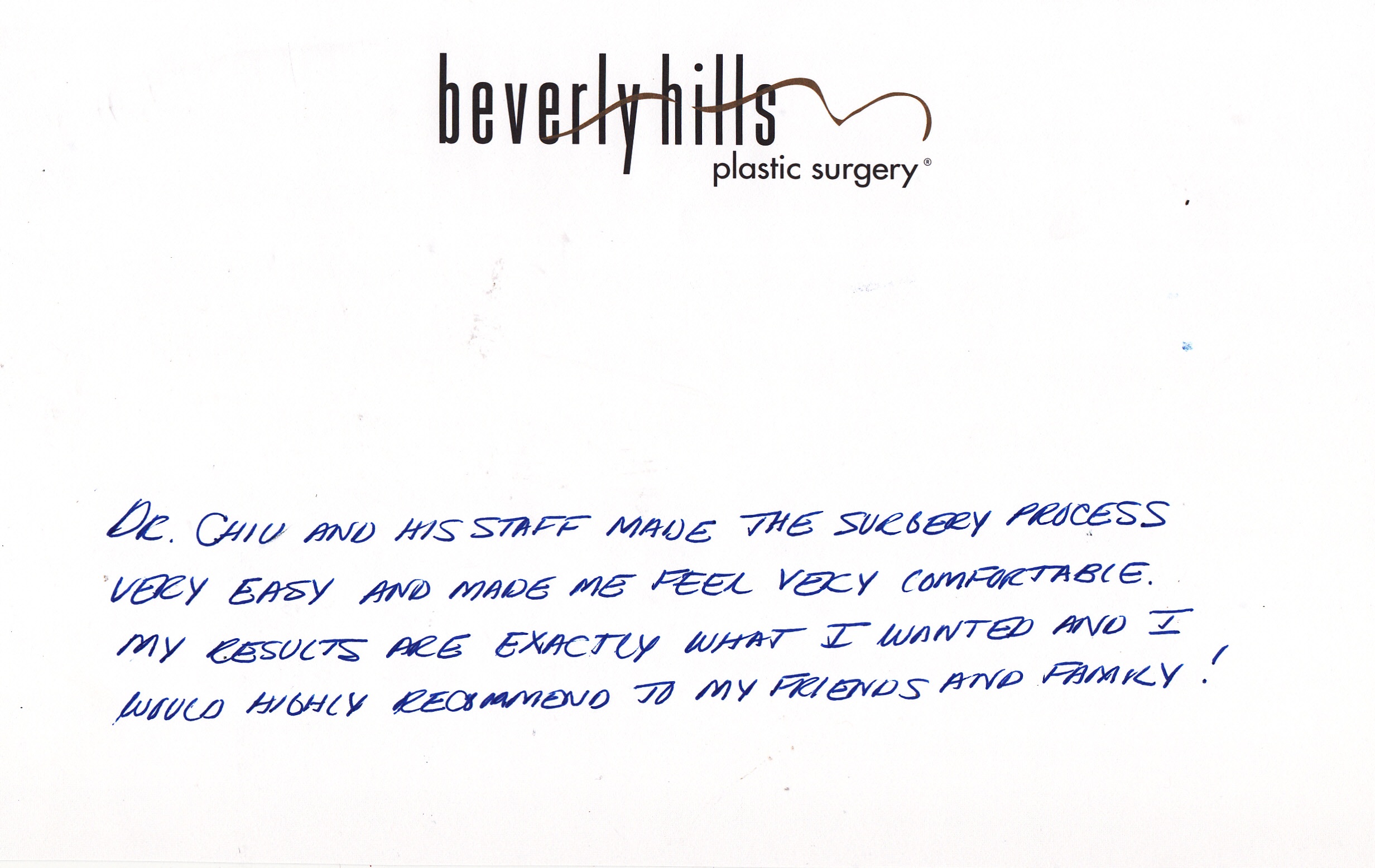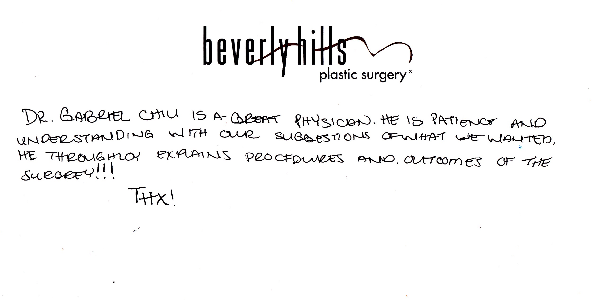 All reviews are from real patients of Dr. Gabriel Chiu at Beverly Hills Plastic Surgery Inc. On behalf of Dr. Gabriel Chiu and staff at BHPS Inc, we would like to thank you for taking the time to leave us your testimonial and review. Your feedback of your experience with Dr. Gabriel Chiu and/or with the team at BHPS, Inc. is very important to us. Such comments and testimonials help us to improve upon and continue to provide the excellent service and care each patient deserves.