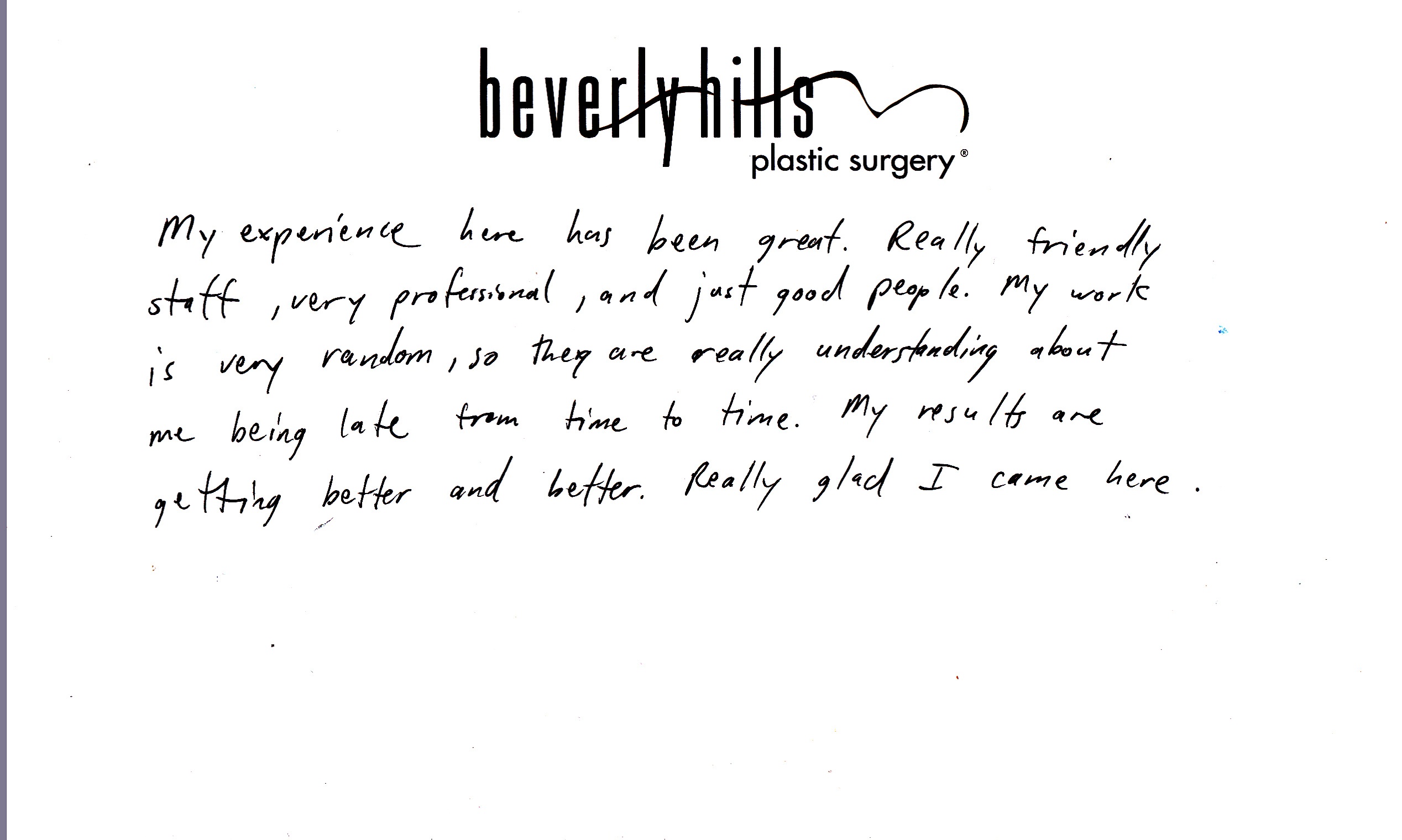 Patient testimonial review for BHPS