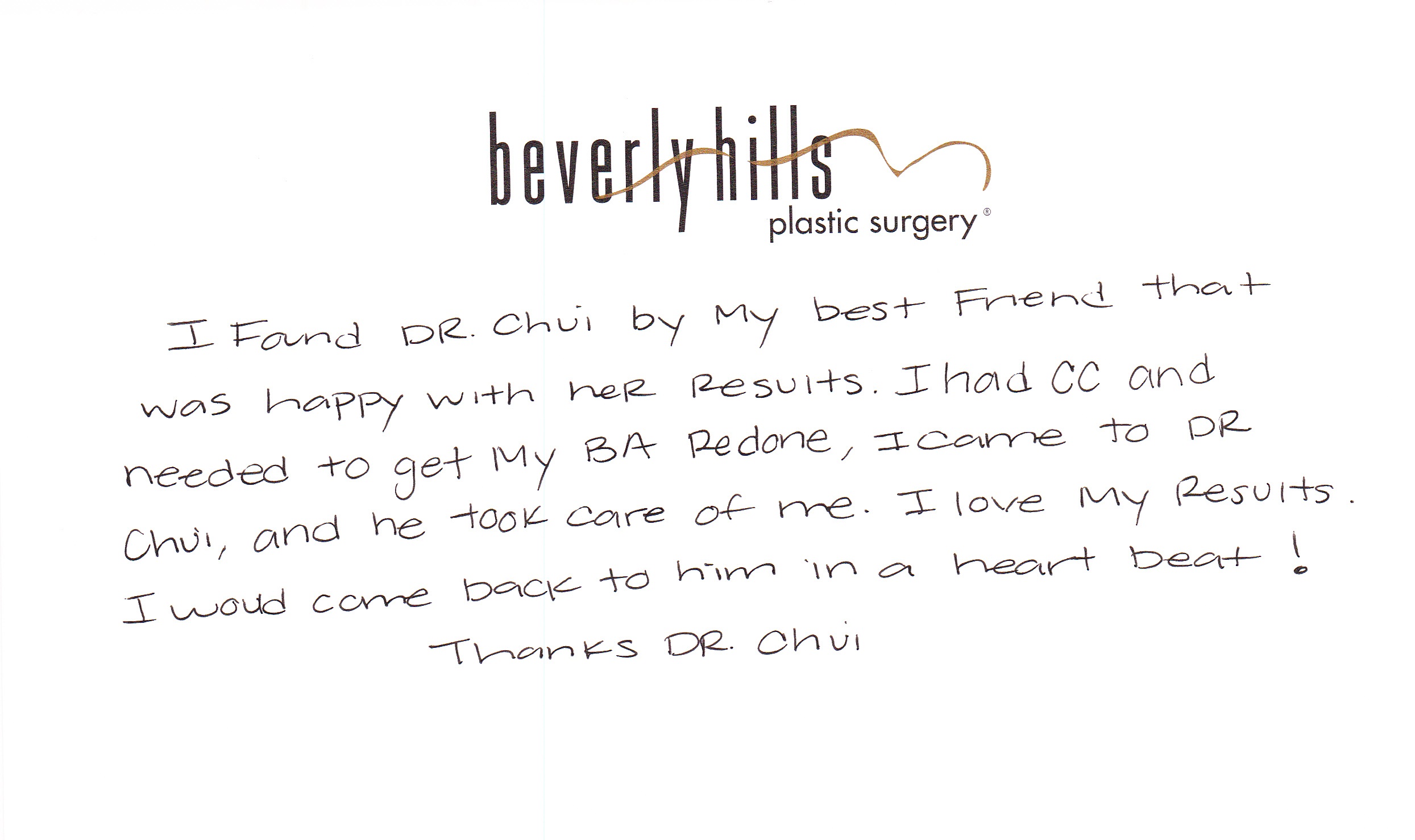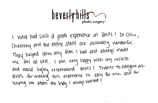 All reviews are from real patients of Dr. Gabriel Chiu at Beverly Hills Plastic Surgery Inc. On behalf of Dr. Gabriel Chiu and staff at BHPS Inc, we would like to thank you for taking the time to leave us your testimonial and review. Your feedback of your experience with Dr. Gabriel Chiu and/or with the team at BHPS, Inc. is very important to us. Such comments and testimonials help us to improve upon and continue to provide the excellent service and care each patient deserves.