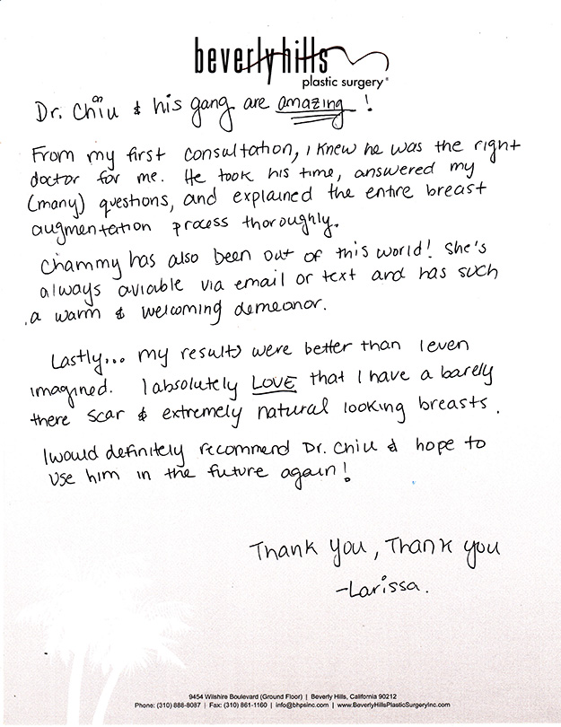 If you are looking for an experienced plastic surgeon in Beverly Hills, read Dr. Gabriel Chiu reviews and testimonials to help you decide whether Dr. Chiu is the best plastic and cosmetic surgeon for you. We trust that you will be impressed!